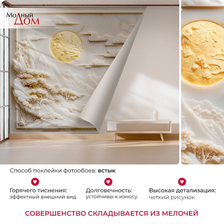 ЧЕМ ОТЛИЧАЕТСЯ фотообои МОДНЫЙ ДОМ ОТ ФОТООБОЕВ И ФРЕСОК ДРУГИХ КОМПАНИЙ?05Вы можете разместить фотообои в любом месте стены. фотообои Модный Дом легко продолжить оклейкой обоев такой же основы. Нет необходимости обрамлять границу фотообои или клеить от угла до угла комнаты.