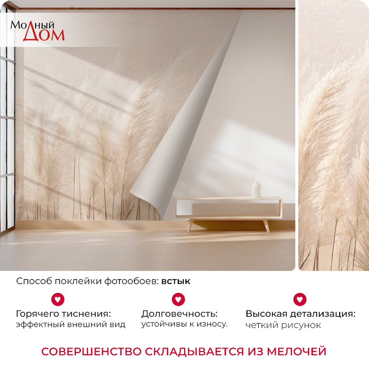 ЧЕМ ОТЛИЧАЕТСЯ фотообои МОДНЫЙ ДОМ ОТ ФОТООБОЕВ И ФРЕСОК ДРУГИХ КОМПАНИЙ?05Вы можете разместить фотообои в любом месте стены. фотообои Модный Дом легко продолжить оклейкой обоев такой же основы. Нет необходимости обрамлять границу фотообои или клеить от угла до угла комнаты.