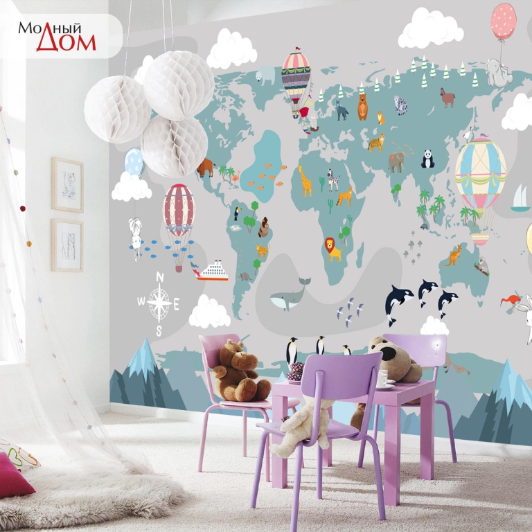 Обойное полотно Фотообои «Модный Дом», Карта мира в детскую на стену 4 09-082 в виде живописных фотообоев – это отделочный материал, который способен украсить любое помещение. Их можно без труда вписать в любой из существующих интерьерных стилей.