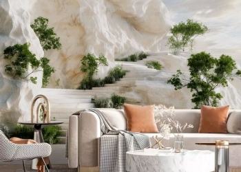Идея размытия изображения даёт ощущение удивительной целостности вашей задумки и потрясающего эффекта отсутствия границ фотообоев и продолжения на стенах ваших комнат